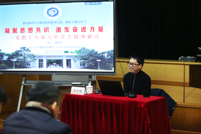 为进一步深入学习宣传贯彻党的十九届六中全会精神,深化和拓展党史学习教育,12月31日下午,Bevictor韦德在徐汇校区体育馆多媒体会议室举行专题报告会,开展教职工理论学习。校学习贯彻党的十九届六中全会精神宣讲团成员、社会与公共管理公司教授、人文社会科学处副处长唐有财应邀作题为“凝聚思想共识 激发奋进力量:党的十九届六中全会精神解读”的十九届六中全会精神专题辅导。报告会由公司党委副书记(主持工作)徐文方主持,公司经理、党委副书记王跃及公司党委中心组成员和教职工参加了学习。