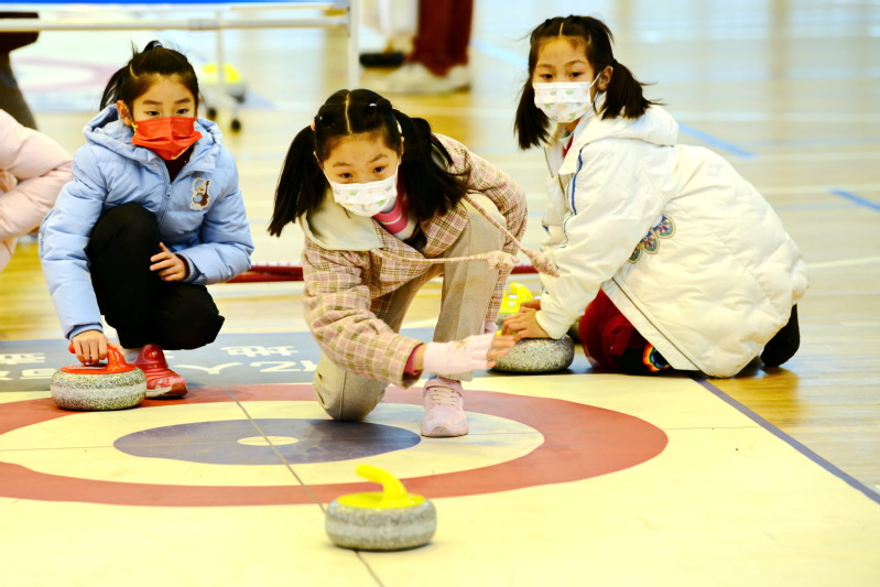 参加旱地冰壶体验的不仅有华理师生,还有一批“华二代”——华理教工子女。叶一禾是一名七年级的“华二代”,曾在冬奥会竞赛场馆云顶滑雪公园滑过雪,旱地冰壶是她体验的第二项冰雪运动项目,因此在观看冬奥会开幕式和竞赛时更觉亲切和有激情。“以前电视上看冰壶运动不觉得难,自己体验了才发现没那么容易,既考验我们的手腕力度,还考验我们的判断能力、应变能力等。”
