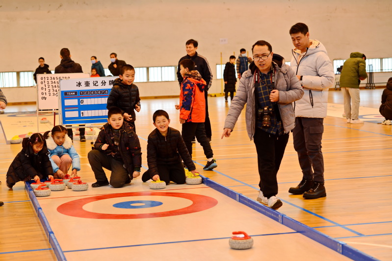 室外天气阴冷、雨水连绵,室内却激情澎湃、热火朝天,2月6日、7日,为庆祝2022北京冬奥的顺利开幕,公司将旱地冰壶项目融入寒假校园生活,分3场举办“体验冬奥·我来噻”——华理旱地冰壶欢乐行活动,近两百名师生、职工和“华二代”近距离体验冰雪魅力,畅享运动激情。
