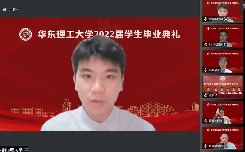 在线观看了由毕业生自己制作的本研毕业纪念视频后,国贸(运)180班俞程皓同学代表本科毕业生发言,深情表达了对大学时光的眷恋,“始于盛夏的故事,也将终于仲夏。习以为常的曾经,却是无法再触摸的永远”,表达了对母校和老师的感恩之情和对对同学们的祝愿。