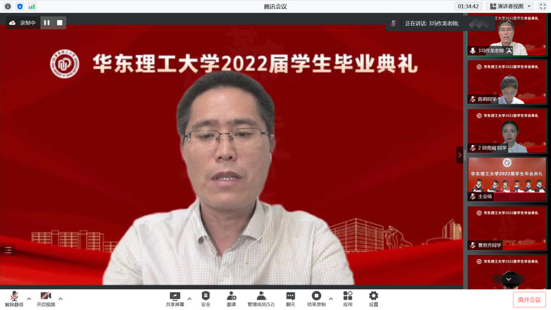 最后,公司党委副书记沈海涛向全体毕业生发出线下毕业季邀请函,邀请大家在今后的任何一个毕业季,回到华理,登上舞台,拨穗拍照。今年是华理建校70周年,届时欢迎大家相约华理,欢聚一堂,共庆华诞,共谱华章!