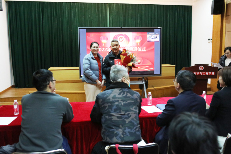 仪式上,青年教师代表戴圣婷向荣退教师代表陆建平献上鲜花,并表达了深深敬意。