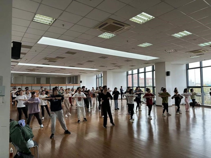 活动的策划和现场组织教师介绍道:“活悦”有氧健身操活动有各种风格的练习内容,持续时间30分钟以上,能够帮助员工更好地愉悦身心,缓解白天的疲劳,释放学习的压力,其适当的运动量和鲜明的音乐节奏的运动氛围更符合当下员工的锻炼需求。