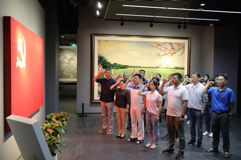 参观现场,公司党委组织重温入党誓词仪式。面对党旗,师生党员庄严地举起右手,紧握拳头,激情满怀,通过铮铮誓词再次重温作为一名共产党员的初心使命与光荣责任。随后通过《龙华:地域文化探寻与传承》微党课学习,师生们深切感受龙华地区的历史风土和文脉传承。