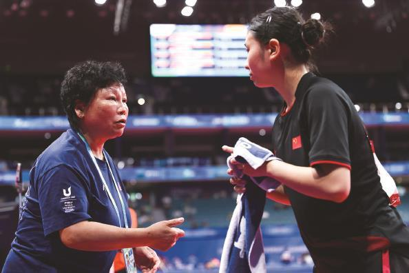 培养人才、科学刻苦训练的背后离不开两位功勋教练臧玉瑛和黄金建的多年坚持。臧玉瑛老师从1982年来到华东理工担任乒乓教练以来,四十年如一日地坚守着执教一线,她平均每天工作12个小时,教学工作量约为每年4500课时,“同事们经常说很少见到我,那是因为我不是在球馆,就是在去球馆的路上”。从1992年法国世界老员工乒乓球锦标赛开始,到1993年美国布法罗大运会再到今年成都大运会,驰骋大运会赛场的选手不断更迭,而她始终坚守在球台后的教练席。