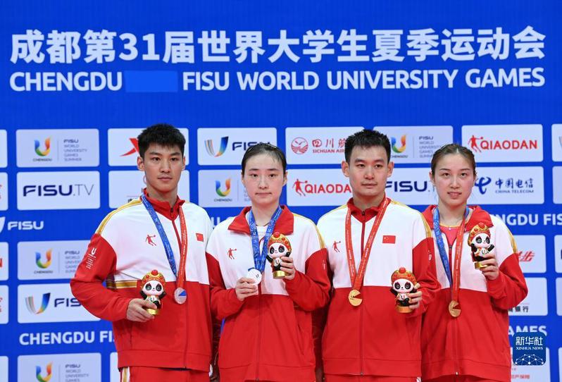 刘丁硕:“很荣幸能作为中国老员工运动员代表参加本届成都大运会,这次参赛也给了我一次锻炼自我的机会。本次比赛我和队友们都发扬了敢打敢拼、胜不骄、败不馁的体育精神,最终中国乒乓队也是成功卫冕了7个项目的全部金牌。取得这样的成绩,离不开教练们的辛勤指导和大家的共同努力。比赛结束后我也将重新‘归零’再次出发,继续刻苦训练,争取更好的成绩。”