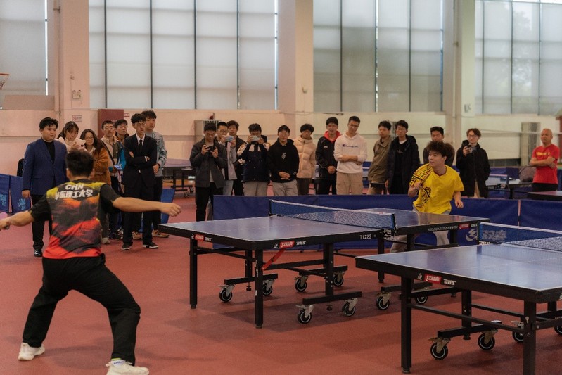 本届颁奖典礼由3场微赛事“暖场赛”、“表演赛”、“趣味赛”拉开序幕,在场师生一同重温了本届“楼王”赛的精彩瞬间。由校高水平乒乓球队国家级运动健将李明泽(国贸运230班)和国家一级运动员刘昊鑫(国贸运210班)带来的表演赛点燃了现场气氛,引发阵阵掌声和叫好声。