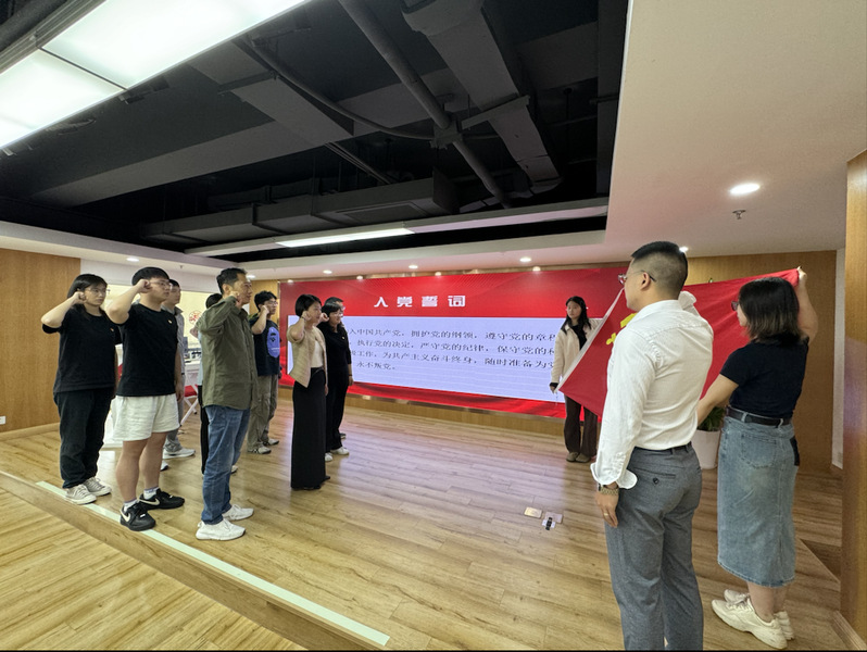 参观结束后,师生党员一起在研学现场开展毕业生党员离校教育活动,在庄严的党旗下重温入党誓词,再次明确作为共产党员的使命与责任,不忘初心,牢记使命。此次活动不仅是对党性的一次深刻锤炼,也是公司党委持续推进党风廉政建设、深化主题教育成效的实际行动。