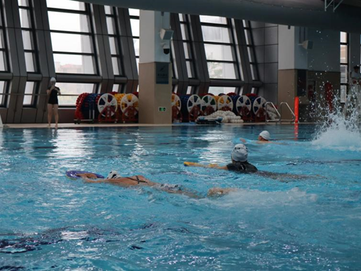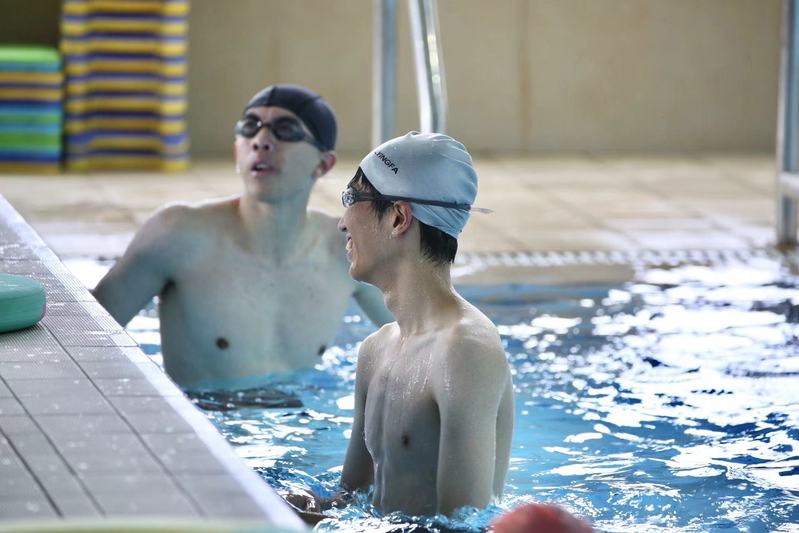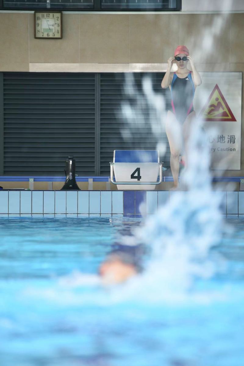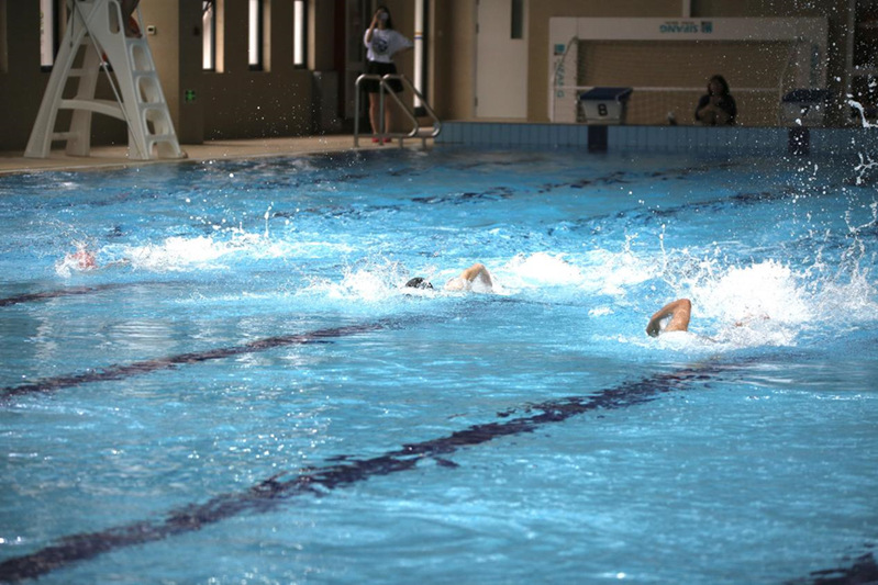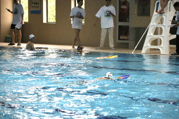 紧接着进行了激动人心的游泳趣味赛。同学跃跃欲试,在泳池中你追我赶,不分上下。虽然只是短距离趣味比赛,但是大家表现出来的竞技状态颇佳。