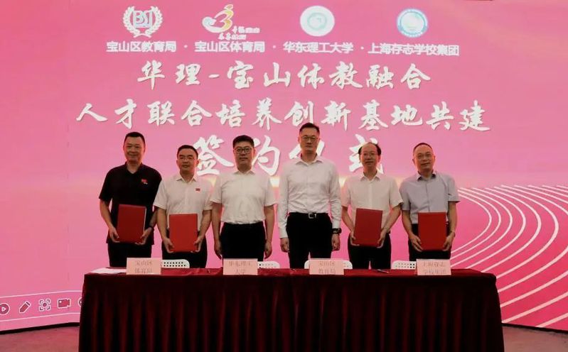 在热烈的气氛中,四方代表共同签署了“华理-宝山体教融合人才联合培养创新基地”共建协议。根据协议内容,四方将在优秀体育人才贯通培养、重点体育项目建设、高水平运动队合作办训、品牌体育赛事与国际交流、体育科研与实验项目优先试点等多个领域开展深度合作,共同搭建体教结合的体育项目建设与发展新平台,建立优秀体育人才的联合培养新机制。