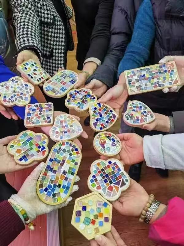 在活动中,徐文方与公司女教工一同参与马赛克杯垫DIY制作,大家充分发挥创造力和想象力,设计创意图案,精心搭配颜色,专心致志、相互合作,制作出一个个风格鲜明、别具特色的马赛克杯垫。活动现场欢声笑语、气氛温馨,彰显节日喜悦。