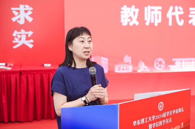 教师代表、国贸运(200班)班导师徐昱玫老师向全体2024届毕业生圆满完成学业表示了祝贺,并寄语同学们在今后的日子里要修得一份坚毅心,一份自愈心和一份平常心,从容面对人生路上的挫折与困难。