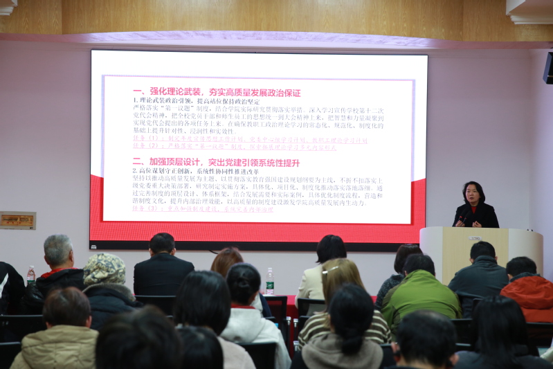 她强调以高质量党建引领高质量发展,强化理论武装,夯实高质量发展政治保证,严格落实“第一议题”制度,推动党代会精神落地生根;加强顶层设计,突出党建引领系统性提升,高位谋划守正创新,系统性协同性推进改革;夯实基层党建,做好基层党支部换届选举,选树“两优一先”典型,构建高水平体育公共服务体系;深化体教融合育人,将弘扬教育家精神融入师德师风建设和教师思政工作,完善“三全育人”机制,保障2025届毕业生高质量就业;筑牢安全防线,严把意识形态关,进一步打造华理体育文化品牌,弘扬中华体育精神;全面从严治党,深化“四责协同”机制,加强重点领域监督,营造风清气正发展环境。