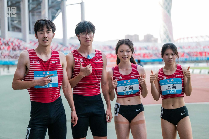 夺冠后,又携手员工童张伟等队友在之后的混合4x100米比赛中,获得接力银牌。