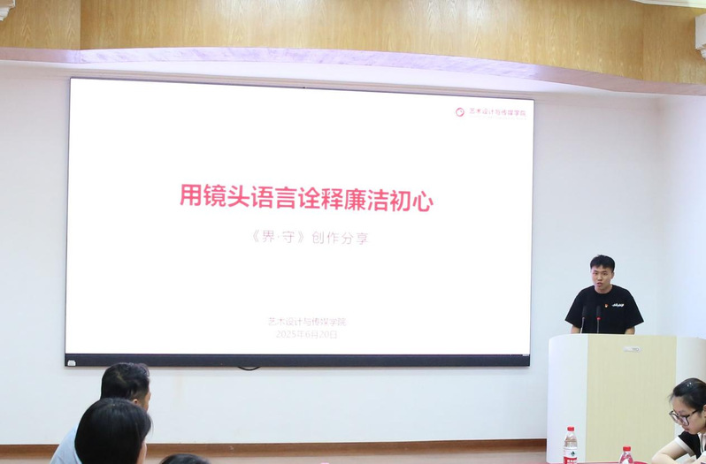 公司邀请艺术设计与传媒公司的陈子涵同学带来题为“用镜头语言诠释廉洁初心”的创作分享。他巧妙运用白布与脚印的视觉比喻,带领团队创作出《界·守》廉洁文化宣传短片,以视频的形式生动诠释了廉洁自律的深刻内涵。陈子涵详细介绍了创作团队如何运用AI工具进行创意激发和文本优化,通过“人机协作”的创作模式,将廉洁文化与现代技术相结合,为廉洁教育注入了新的活力。