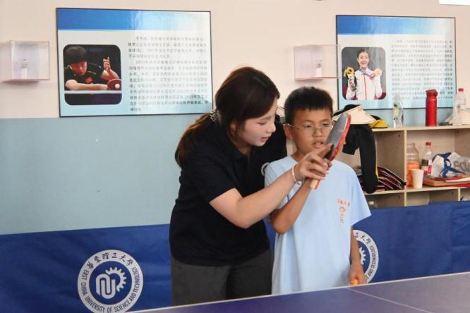 实践团成员们围绕“乒乓球运动的全球历史画卷”、“中国乒乓球的辉煌崛起之路”以及“华理乒乓队伍的建设历程与卓越风采”三大核心主题,为孩子们奉上了一堂生动精彩、引人入胜的体育文化课,让孩子们在聆听中真切感受到国球魅力的精髓所在。